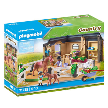 Jump into the riding fun with the loving PLAYMOBIL playset riding stable! This detailed play figure set will delight all horse fans. In the horse box, caring children can look after the beloved horse and the cute foal: Grooming, grooming, brushing and, of course, mucking out the stable, it's all part of the daily routine. After training, the saddle, halter, reins and helmet are cleaned and neatly stowed away. Recommended for ages 4 and up.