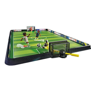 Shot, goal and victory! Get into the soccer fever with the soccer stadium from PLAYMOBIL. All the players have been looking forward to the big tournament for months and can hardly wait for kick-off. After the warm-up phase, it's onto the pitch and then the game can begin. Which team will win the cup? Thanks to the practical kick function, flat and high balls can be placed precisely. The score can be set on the scoreboard. Use the number labels to stick on the player number of your favorite player. A great playset for sport loving children. The playset contains two soccer players with kick function and two goalkeepers, three soccer balls, a scoreboard, label sheets and many other extras for exciting kicking fun in the children's room.