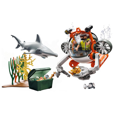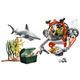 How dark it is down here on the seabed. The submarine driver brightens his headlights. There, something sparkles back there. Hidden in the bottom, the treasure chest with the jewels is peeking out, which the shark is bravely defending. Can you help the submarine captain to retrieve the treasure?