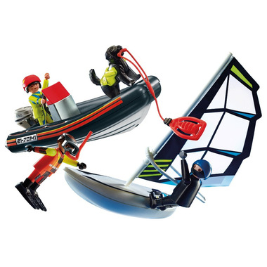 Set includes: three figures, dog, boat, buoy, life jacket, and other accessories. Recommended for ages four to ten years.