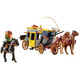 Travel back to the days of the wild west in the Wild West Stagecoach! The masked bandit tries to rob the stagecoach but the cowboys will not give up so easily. The door to the stagecoach opens and closes to allow for loading and unloading of passengers. Set includes three figures, two horses, and other accessories. Recommended for ages four to ten years.