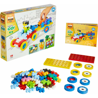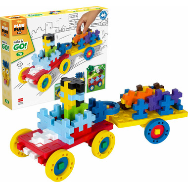 Discover the Plus-Plus BIG Make & Go Vehicles Set with 70 pieces, a construction game from Denmark loved by children and parents alike. With this set, kids can bring their creations to life and roll them as they desire. The set includes everything needed to create beautiful vehicles step by step: 2 baseplates, 8 BIG Go wheels, 60 Plus-Plus parts, and an illustrated guide with step-by-step instructions. These uniquely shaped elements fit together easily, offering endless possibilities for both 3D and flat designs in a multitude of colours. Plus-Plus blocks develop your child's imagination and creativity, providing hours of entertaining and educational play.