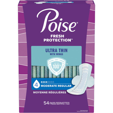 Say goodbye to discomfort from bladder leaks and hello to Poise Ultra Thin Pads, our thinnest incontinence pad, designed for your comfort and protection. Poise incontinence pads for women are made specifically for bladder leaks unlike period pads, which are meant for menstrual needs. In fact, Poise pads keep you 10x drier compared to the leading period pad. They absorb bladder leaks, lock away wetness, neutralize odors and are made with breathable materials that help eliminate dampness, so you feel clean and fresh too! Poise bladder control pads are discreet and fit securely in your underwear. Poise incontinence pads are available in light, moderate, maximum, and ultimate absorbencies. For lighter absorbency needs, check out Poise Daily Liners.