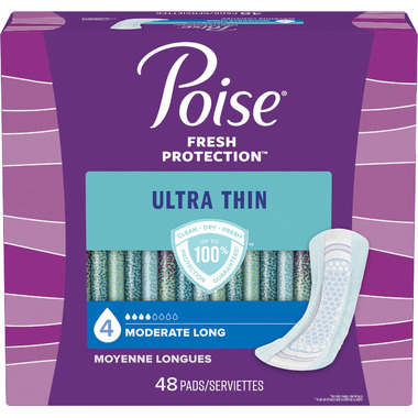 Say goodbye to discomfort from bladder leaks and hello to Poise Ultra Thin Pads, our thinnest incontinence pad, designed for your comfort and protection. Poise incontinence pads for women are made specifically for bladder leaks unlike period pads, which are meant for menstrual needs. In fact, Poise pads keep you 10x drier compared to the leading period pad. They absorb bladder leaks, lock away wetness, neutralize odors and are made with breathable materials that help eliminate dampness, so you feel clean and fresh too! Poise bladder control pads are discreet and fit securely in your underwear. Poise incontinence pads are available in light, moderate, maximum, and ultimate absorbencies. For lighter absorbency needs, check out Poise Daily Liners.