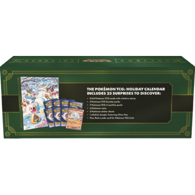 Celebrate the season with 25 days of surprises in the Pokémon TCG: Holiday Calendar! From special foil cards to booster packs and more, there’s a different Pokémon goodie to open every day.