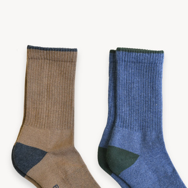 This is a pack of 2, custom designed, sporty and cozy mixed-and-matched Peruvian Pima cotton socks to keep your feet warm and comfortable. Peruvian pima cotton is hand-harvested, which means the production process has a much-reduced impact on the environment compared to a machine-based harvesting production process. It is hypoallergenic for those with sensitive skin, and it's breathable and moisture-wicking for those active sock-lovers.