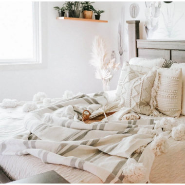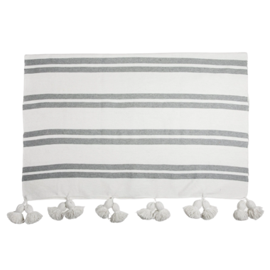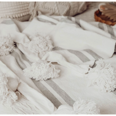 Pokoloko Moroccan Striped Pom Pom Throw Racer White