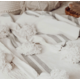 - Contrasting, generously sized 100% cotton, handmade pom poms