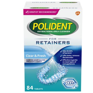 IMPORTANT: Read all directions before use. 1. Drop one Polident Retainers tablet into enough very warm (not hot) water to cover your appliance. 2. After soaking for 15 minutes, brush your appliance with the solution using a soft brush. 3. Rinse appliance well with running water for 1 minute before inserting into mouth. Discard solution immediately after use. #1 DENTIST RECOMMENDED* *By Canadian Dentists, Denturists and Hygienists. in laboratory tests, when used as directed.