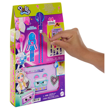 - Kids can discover themed surprises like a 3-inch Polly Pocket doll behind the locker, a paper pouch that dissolves in water to reveal accessories, and an exclusive hoodie buddy outfit for Polly doll!