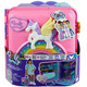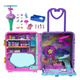 Take a trip with Polly Pocket doll in this child-sized travel bag! The Pollyville Resort Roll Away doubles as a playset and storage unit for Polly compacts! The playset has an extendable handle to take the resort anywhere on-the-go. It opens to a 3-story hotel with an elevator, a fun arcade to play with friends, a spiral slide, speedbumps to activate exciting features, and so much more to discover! With 4 dolls, 1 vehicle, and 25+ accessories, the play possibilities are endless. Check into the resort, get ready in the hotel room, and slide down to the beach. Beep beep! Hop in the car and drive over the speed bump to activate parasailing! Go for a ride in the helicopter with Polly and fly sky high! Time for the ferris wheel with friends, it's so fast! Kids can take part in the ultimate oceanside vacay in this Pollyville Resort Roll Away Playset. Ideal for ages 4 years old and up. Colours and decorations may vary.