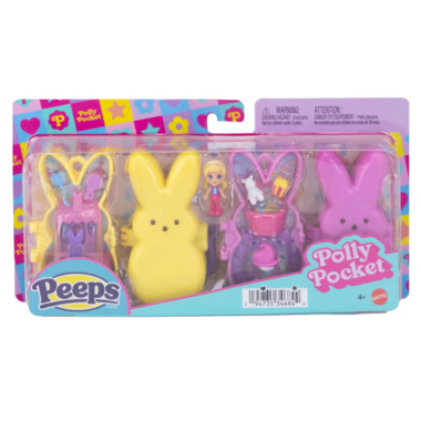 The PEEPS® and Polly Pocket partnership is back with another adorable 2-pack that celebrates this iconic duo! The PEEPS® treat compacts open to micro amusement parks with themed details and activities. There's so much to do – the set includes a Polly doll and accessories like popcorn and a balloon to bring the PEEPS® theme park to life! These collectible playsets are ideal for Polly Pocket and PEEPS® fans alike, ages 4 years old and up. Subject to availability. Colors and decorations may vary.