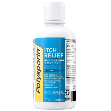 Polysporin Itch Relief Lotion reduces pain and itching with its clear and cooling formula. It is fast-acting and provides soothing relief of pain and itching due to: