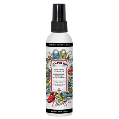 Poo~Pourri Shoe Odour Eliminator is an odour stomping blend of cedarwood, eucalyptus and grapefruit essential oils that help eliminate shoe stink!