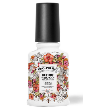 Before-you-go toilet spray. Transport your restroom intro a tropical oasis! Poo-Pourri Tropical Hibiscus is a refreshing blend of hibiscus, apricot and citrus natural essential oils. Septic Safe Up to 70 uses.