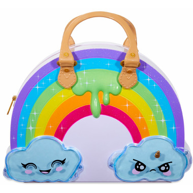 Give slime a rainbow makeover with Poopsie™ Chasmell Rainbow Slime Kit. Now, D.I.Y. slime can be customized in a whole new way – by mixing in makeup to create a beautiful rainbow of slimes. Kit features 35+ surprises, including colorless D.I.Y. slime, a rainbow of lipsticks, lip glosses, and eye shadows to mix into slime to change the color. The makeup can also be used on you, so both you and your slime get a makeover! Transform slime again by mixing in Rainbow Magic, Rainbow Sparkle, or Rainbow Crunch. Then, store slime in the included airtight storage compact or in the adorable cloud compartments featured on the outside of the kit.