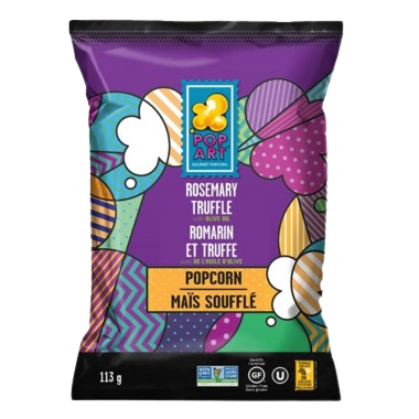 Non-GMO Popcorn, Olive Oil, Sea Salt, Rosemary, Black Summer Truffle, Rice Flour,