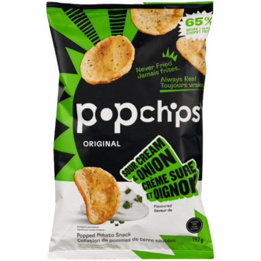Pop Chips Sour Cream & Onion Potato Chips are a popped potato snack never fried, always real.