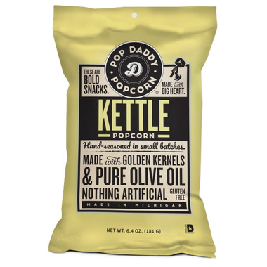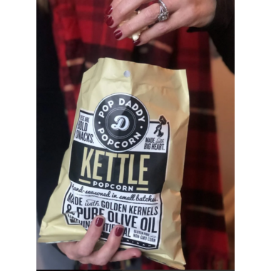 Pop Daddy Original Popcorn is hand seasoned in small batches. Made with golden kernels and pure olive oil.