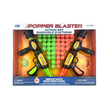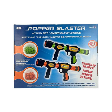 Includes: 2 Popper Blasters, 60 soft EVA foam balls, and 2 storage bags Easy to useחjust pump and shoot! Perfect for indoor and outdoor play A great gift for kids who love action games.