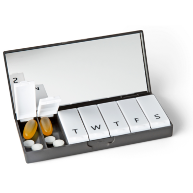 Meet the first sleek and sustainable weekly pill box designed to look as good at brunch as it does on your nightstand. Minimalist and modern, these pill boxes feature a clean design that includes a soft-touch matte finish outside and a mirror on the inside.