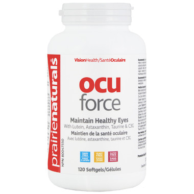 Prairie Naturals Ocu-Force contains a synergistic blend of the newest and most revolutionary super-antioxidants for promoting healthy eyes and vision including benfotiamine, astaxanthin, lutein, zeaxanthin and black currant extract. The powerful ingredients in Ocu-Force have been shown to support normal eye function, reduce damage caused by free radicals, protect against oxidation of retinal tissues, restore metabolic balance disrupted by high blood sugar, improve night vision, increase circulation to eyes, soothe eye strain and strengthen eye tissue.