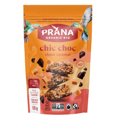 PRANA Organic Chic Choc Chocolate Caramel Crunchy Bites are a tasty combination of almonds, hazelnuts and super seeds.