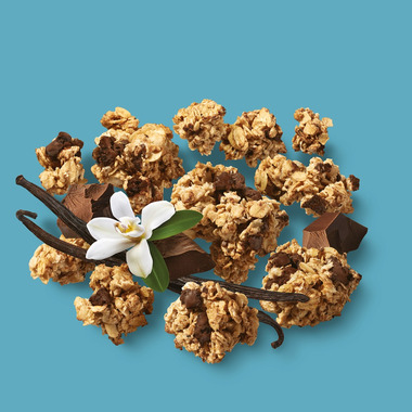 Rolled oats*, Cane sugar*, Sunflower oil*, Dark chocolate*(cocoa liquor*, cane sugar*, cocoa butter*), Oat flour*, Shredded coconut*, Brown crispy rice* (brown rice flour*), Chia seeds*, Non-GMO corn starch, Natural flavour*, Sea salt, Cinnamon*, Mixed tocopherols (added to preserve freshness).*Organic