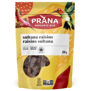 Sultana raisins*, sunflower oil*.*Organic. May contain nuts, soy and sesame ingredients
