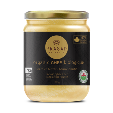 Prasad Ayurveda Certified Organic Ghee is ideal for stir frying, deep frying, and baking. It is an excellent alternative to butter when used on popcorn, garlic bread, or as a spread.