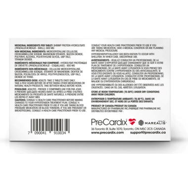 Always consult with your health care provider before making changes to your blood pressure management plan. PreCardix® does not treat, cure or prevent medical conditions. Measure and monitor blood pressure regularly. Know the signs of heart attack and stroke. Do not take PreCardix® if you are pregnant, breastfeeding, have renal artery stenosis, history of angioneurotic edema or shellfish allergy.