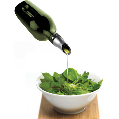 Prepara Adjustable Oil Pourer is perfect whether you are pouring olive oil into a pan, or finely drizzling on bruschetta. The adjustable-flow pourer will help you use the proper amount for the job. Simply twist the spout to select the desired pour speed that specifically suits your task. The patented dripless pour spout stops drips of oil from spilling your counter top or tablecloth. The universal fit works on a variety of olive oil, and vinegar bottles.