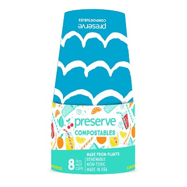 Preserve Compostables Hot Cups are made from plants and return to the soil when the party is over. These 12 oz cups are suitable for hot and cold beverages. They are non-toxic and manufactured in the USA from renewable resources.
