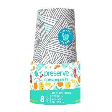 Preserve Compostables Hot Cups are made from plants and return to the soil when the party is over. These 12 oz cups are suitable for hot and cold beverages. They are non-toxic and manufactured in the USA from renewable resources.
