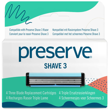 These replacement blades for the Preserve Shave 3 and Preserve Triple Razor flex and pivot to prevent nicks and cuts and provide a smooth, close shave for men and women alike.