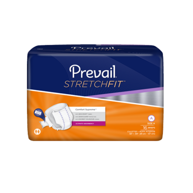 Prevail StretchFit briefs have stretchy panels that are easy to grab, pull and attach for an adjustable fit that is secure and comfortable. With Prevail StretchFit stretchy panels fewer sizes are needed - a 4-size brief system is reduced to 2 sizes of Prevail StretchFit briefs. Size A briefs are suitable for waist sizes 32" - 54". This case includes 6 bags of 16 briefs (96 briefs total).