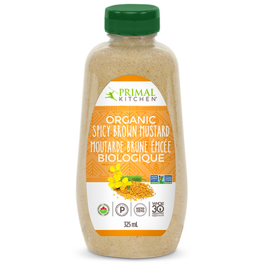 Primal Kitchen's Organic Spicy Brown Mustard is made with turmeric. Shake well before serving. Refrigerate after opening.