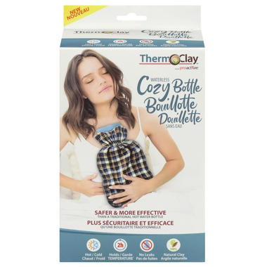 - Safer than and better: waterless removes burn risk from leaks or a bursting water bottles as rubber degrades over time. Its also latex free. More effective, natural pain relief: Natural clay retains temperature for up to 2 hours, providing 6X longer lasting hot comfort or soothing cold therapy when compared to compresses made from oats or grains. Versatile: provides Hot and Cold Cold Therapy for soothing relief as it reduces swelling and Hot Therapy for comforting warmth for muscle pain while helping improve range of motion. The natural clay remains flexible even while cold, allowing it to conform to the body part being treated and to penetrate deep into the tissue to reduce pain and tension. Makes your bed cozy: ItҒs a great way to keep your feet or body warm in bed during those cold winter nights! Hygienic: the easy to clean compress comes with a removable, machine washable cover. No unpleasant odour: unlike some organic grain compresses Your Therm-O-Clay Cozy Bottleٙ package includes: One Cozy Bottle One machine washable flannel cover. User instructions are printed directly on the compress.