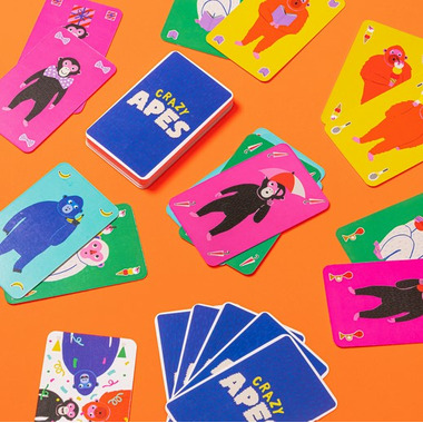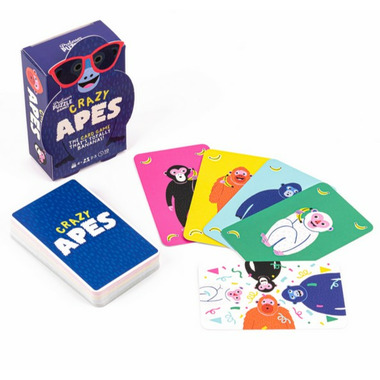 There's plenty of monkeying around in this crazy card game! Take turns playing your matching orangutan, gorilla, chimp and gibbon cards, but watch out for the ape party cards in this fun twist on Crazy Eights!
