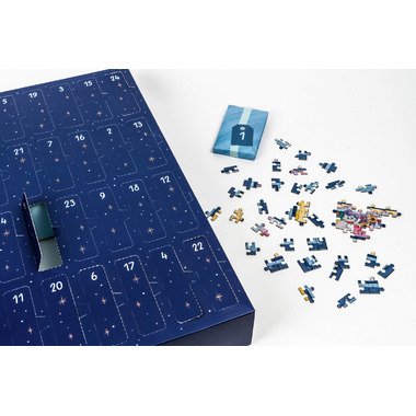 This is the loveliest advent calendar I've ever received! The puzzle art is beautiful, the pieces are made well (matte finish on surprisingly heavy cardboard--pieces fit well together), and assembling it each day has been a joy. The pieces are quite tiny, so if you've got little ones at home, this is definitely a potential choking hazard.