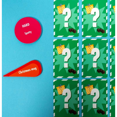 It’s a holly, jolly game of hide and seek with this festive scavenger hunt! Players race to find an object that matches the item on their card to win a mysterious Trash or Treasure Card. Who will grab the best festive finds and collect the most treasure?