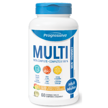 Progressive Chewable Multi for Adult Men is the perfect choice for anyone who has trouble swallowing pills. It addresses the nutritional needs of a modern lifestyle in a delicious Natural Citrus flavour.