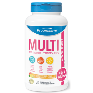 Progressive Chewable Multi for Adult Women is the perfect choice for anyone who has trouble swallowing pills. It addresses the nutritional needs of a modern lifestyle in a delicious Natural Citrus flavour.