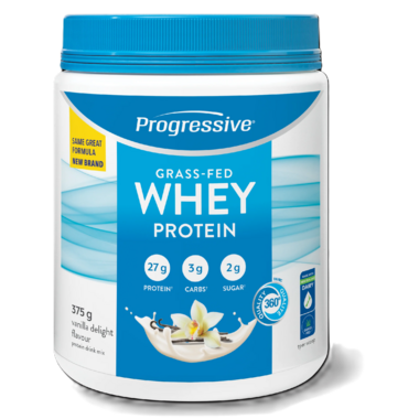 Progressive Grass Fed Whey Protein features a gently processed, low temperature filtered whey protein concentrate imported from New Zealand. Each delicious scoop delivers 27g* of protein with only 2g of fat, 2g of sugar, and zero artificial flavours, colours, or sweeteners.