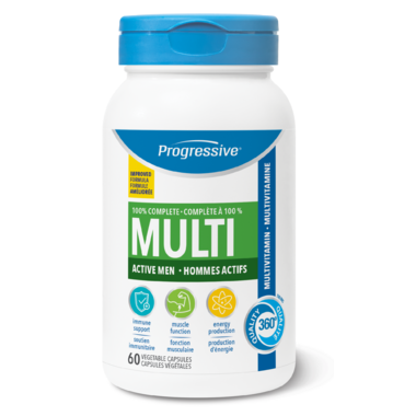 Progressive 100% Complete MultiVitamin for Active Men is designed for men on the go. Whether you exercise regularly, work long hours, raise a family or any combination of the above, your body needs the support of an Active MultiVitamin formula. This improved formula features a complex of supporting nutrients designed to address Mens health needs. These include Quercetin, Saw Palmetto, Fenugreek, Maca, Ashwagandha, and Siberian Ginseng.