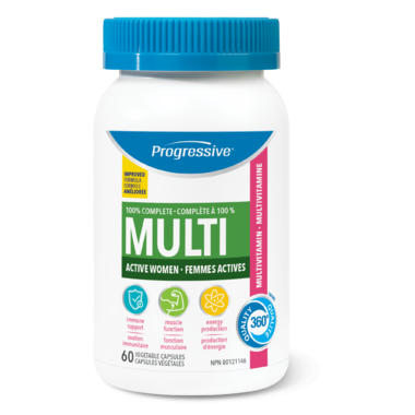 Progressive 100% Complete MultiVitamin for Active Women is designed for women on the go. Whether you exercise regularly, work long hours, raise a family or any combination of the above, your body needs the support of an Active MultiVitamin formula. This improved formula features a complex of supporting nutrients designed to address womens health needs, including promoting healthy estrogen balance. These supporting nutrients include Quercetin, DIM, Chastetree, Maca, Ashwagandha, and Siberian Ginseng.