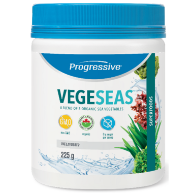 Progressive ORGANICS VegeSeas contains a family of organic, non-GMO green foods that includes spirulina, nori, dulse, kombu, and wakame. Each of these aquatic-origin vegetables was grown and harvested in complete compliance with organic standards.