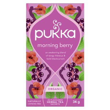 Pukka Morning Berry, an awakening blend of tangy hibiscus & bold blackcurrant.