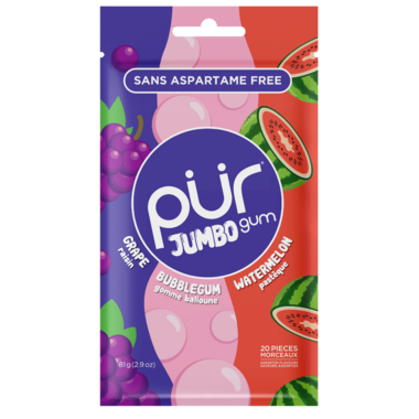 PUR Sugar-Free Jumbo Gum Grape, Bubblegum, Watermelon