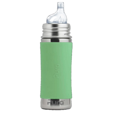 The 325ml / 11oz sippy cup is the ideal transition for your toddler when he or she is ready move away from a nipple bottle. Like all products in the Pura line, the toddler/sippy bottle is 100% plastic-free so you can be sure you are getting the safest, BPA-free and toxin-free bottle on the market. Their patent pending XL Sipper vented soft spout is crafted from 100% medical-grade silicone so you can be sure that you are truly using a toxin-free feeding system. As with all products in the Pura line, the sippy bottle features our patented stainless steel lid design that allows the bottle to be used with Puras silicone straw, flat cap, or Big Mouth sport top. And, if your big boy or girl is likely to have a little brother or sister, the sippy can be seamlessly converted into an infant bottle by swapping the spout for one of their silicone Natural Vent Nipples! This bottle is shatterproof, 100% toxin free, and comes with a silicone travel cover.